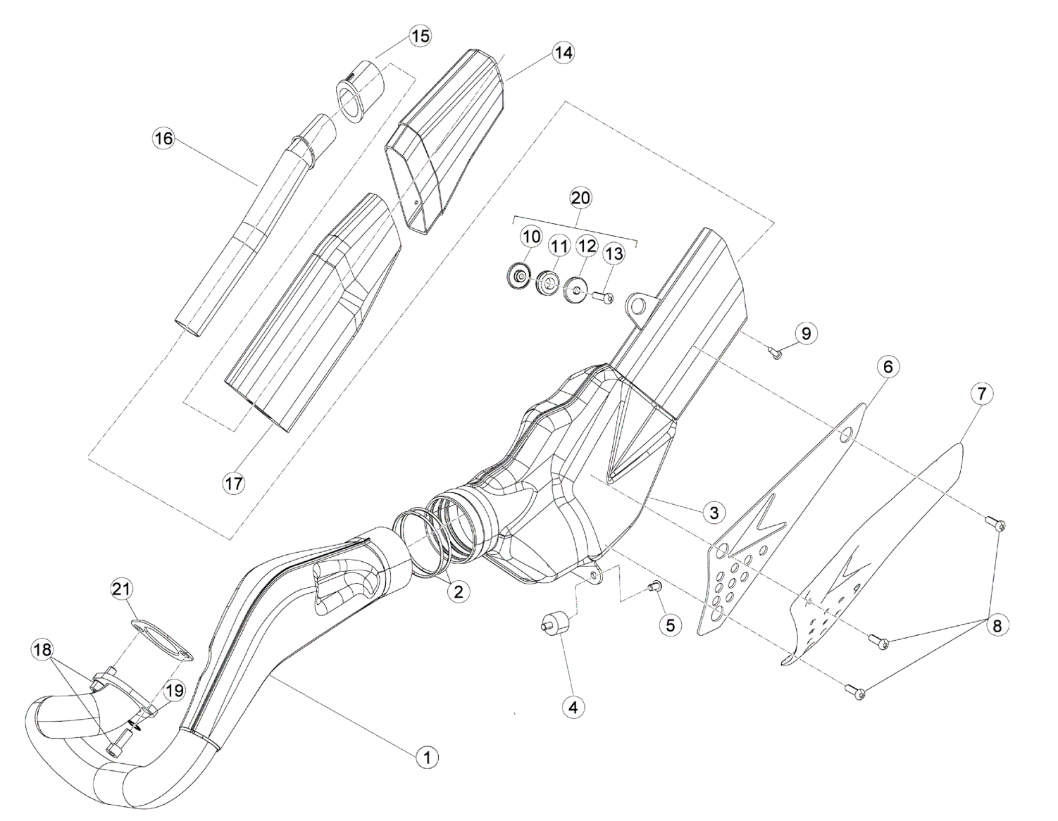 KOŃCÓWKA TŁUMIKA BETA EVO 125/200/250/290/300 2T 2009-2020 OEM 007370310000 KATALOG CZĘŚCI POZYCJA NUMER 14