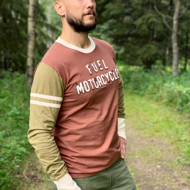 Koszula z długimi rękawami „Old School” inspirowana jest utraconą erą wyścigów motocyklowych na desce, początkiem amerykańskiej miłości z szybkością. Jim Davis. Gene Walker. Fred Ludlow. Albert „Shrimp” Burns. Ralph Hepburn. Ray Weishaar. Byli to młodzi mężczyźni z gospodarstw rolnych i małych miasteczek, którzy zasłużyli sobie na przelotną sławę na początku XX wieku, jeżdżąc na motocyklach po drewnianych ścieżkach z prędkością przekraczającą 100 mil / godzinę. Wykonana z najlepszej portugalskiej bawełny produkowanej lokalnie i zgodnie z zasadami zrównoważonego rozwoju, ta koszulka jest limitowana - po jej zniknięciu! * Obróć mankiet koszuli do regularnego użytku i rozciągnij go do jazdy