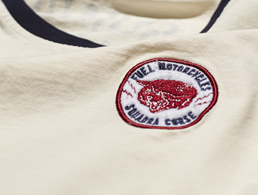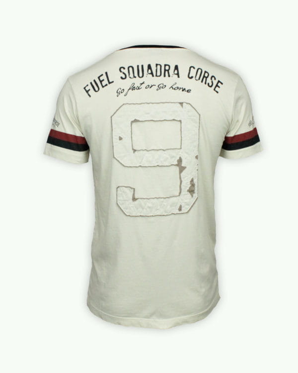 Limitowana edycja, podszyta kamizelką Fuel Corse naśladuje wygląd starych sportowych mundurów. Super czesana bawełniana koszulka ma okrągły kołnierz i haftowane i drukowane grafiki. To jest projekt z limitowanej edycji. Nie będziemy już więcej robić, gdy wszystko zniknie! Dane techniczne Wykończenie stonewashed. 100% bawełny super czesanej. Haftowane detale.