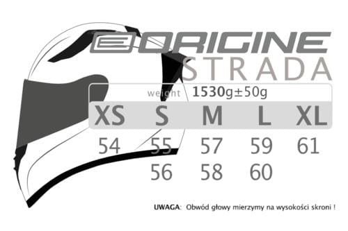 ask STRADA ADVANCED Matt Red White L Strada to kask pełny, który wygląda jakby był żywcem zdjęty z zawodnika moto GP. Sportowy i zadziorny design pozwala podczas każdej jazdy poczuć się jak na wyspie Man. Wyposażony jest w blendę przeciwsłoneczną wysuwaną jednym ruchem ręki, co zapewnia wysoki poziom komfortu podczas jazdy w słoneczne dni. Szybka wykonana jest z materiału odpornego na zarysowania z powłoką odbijającą promienie UV. Aby zminimalizować zjawisko parowania wizjera kask został wyposażony w deflektor natomiast szybka przygotowana jest pod założenie Pinlocka. Komfort podczas jazdy w upalny dzień zapewniają cztery zintegrowane wloty powietrza, które można regulować. Tylny spojler stabilizuje kask podczas jazdy z dużą prędkością. Nisko położona szczęka znacznie ogranicza wiatr i poziom hałasu zapewniając wysoki poziom komfortu podczas jazdy. Aby utrzymać kask w czystości posiada całkowicie wyjmowane i przystosowane do prania wnętrze. Strada posiada europejską homologację ECE 22-05 co gwarantuje wysoki poziom bezpieczeństwa. Specyfikacja: Kolor: Matt Red White Rozmiar: L (59-60cm) Waga: 1520 g Typ kasku: zamknięty/integralny Skorupa termoplastyczna Wyjmowana wyściółka Oddychająca wyściółka Możliwość prania wyściółki Wyściółka wykonana z antyalergicznych i antybakteryjnych materiałów Homologacja ECE 22-05 Zapięcie mikrometryczne Powłoka anty UV Szyba odporna na zarysowania System wentylacji: wentylacja kanałowa, deflektor oddechu, wloty górne, wloty w szczęce, wyloty tylne System Pinlock zapobiegający parowaniu Zintegrowana blenda przeciwsłoneczna Marka Origine to włoska jakość w najlepszej cenie. Podczas każdej, nawet najkrótszej jazdy można poczuć klimat słonecznej Italii. Nowoczesny i unikatowy design przyciąga wzrok i sprawia, że chcemy jeździć więcej, dalej.Najnowsze technologie używane przy produkcji gwarantują maksymalne bezpieczeństwo i komfort użytkowania. Potwierdzają to testy niezależnych instytucji, w których wszystkie kaski uzyskały homologację ECE 22-05. Różnorodność całej gamy produktów oferowanych przez Origine pozwala dopasować kask do własnych preferencji podkreślając indywidualny charakter i styl jazdy. Każdy znajdzie tu kask dla siebie.