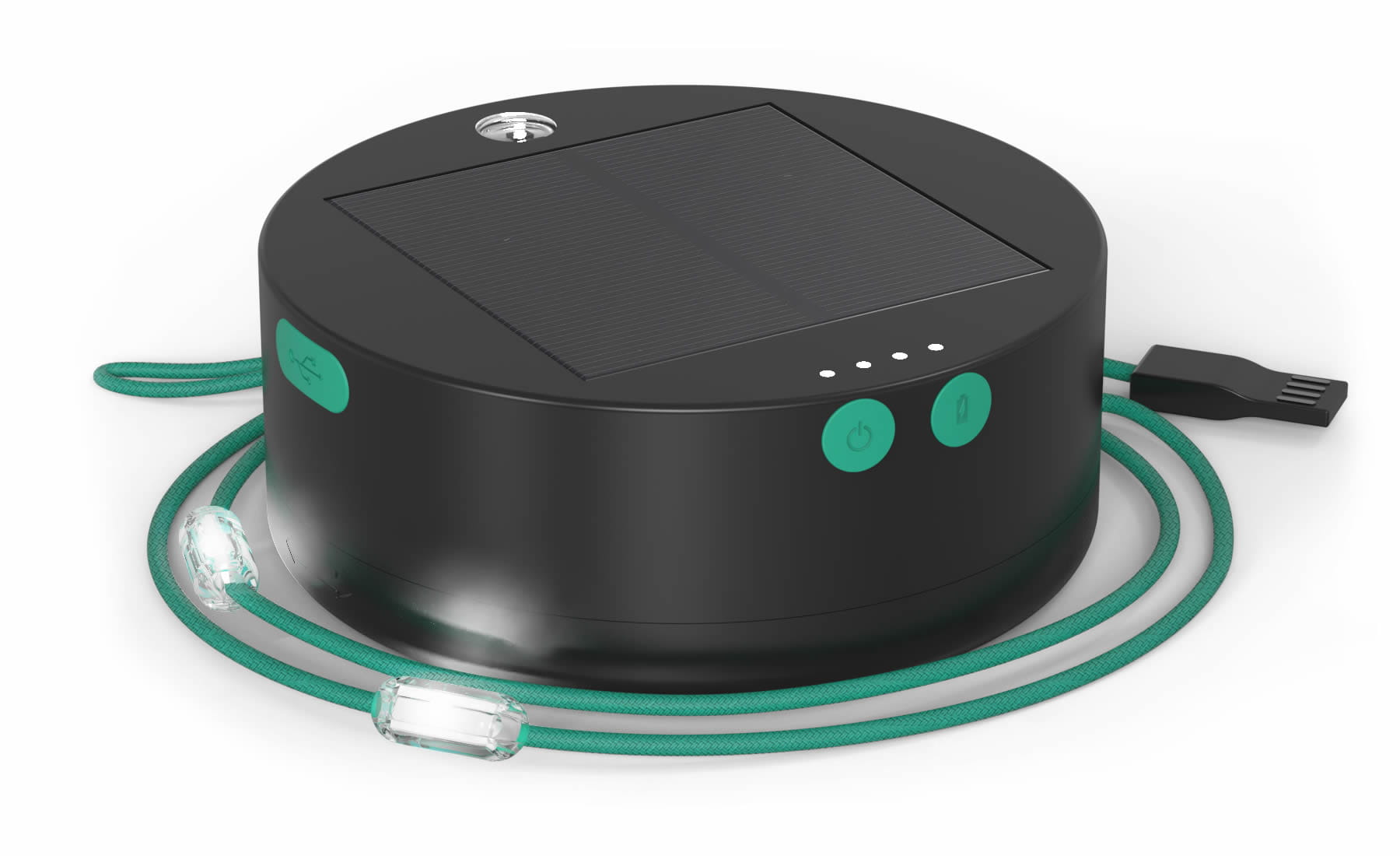 Mała lekka lampka solarna Wyposażona w jeden port USB aby zapewnić urządzeniu mobilnemu dodatkowy zastrzyk energii Można również szybko doładować z tradycyjnego gniazda na motocyklu . 20 ciepłych białych diod LED w 10 węzłach 4 tryby światła: dioda LED jednostki bazowej włączona Ciąg LED na niskim (15 lumenów) Średni (50 lumenów) Wysoka (100 lumenów) Trwa do 20 godzin na niskim poziomie Akumulator litowo-jonowy 2000 mAh 3,7 V Wysokowydajny panel słoneczny Ładuje w 12-14 godzin przez bezpośrednie światło słoneczne / 6-8 godzin przez USB 4 diodowy wskaźnik poziomu naładowania baterii Jednokierunkowy port USB 1A do ładowania urządzeń mobilnych Ładuje większość smartfonów 30-50% Wtyczka USB do ładowania akumulatora bazy 18 stóp odpornego na zginanie, plecionego sznurka nylonowego Odporny na pył / wodę stopień ochrony IPx4 Średnica: 12,7 cm / 5 cali Wysokość: 7 cm / 2,8 w stanie otwartym | 5 cm / 2,5 cala zamknięta Waga: 320 g