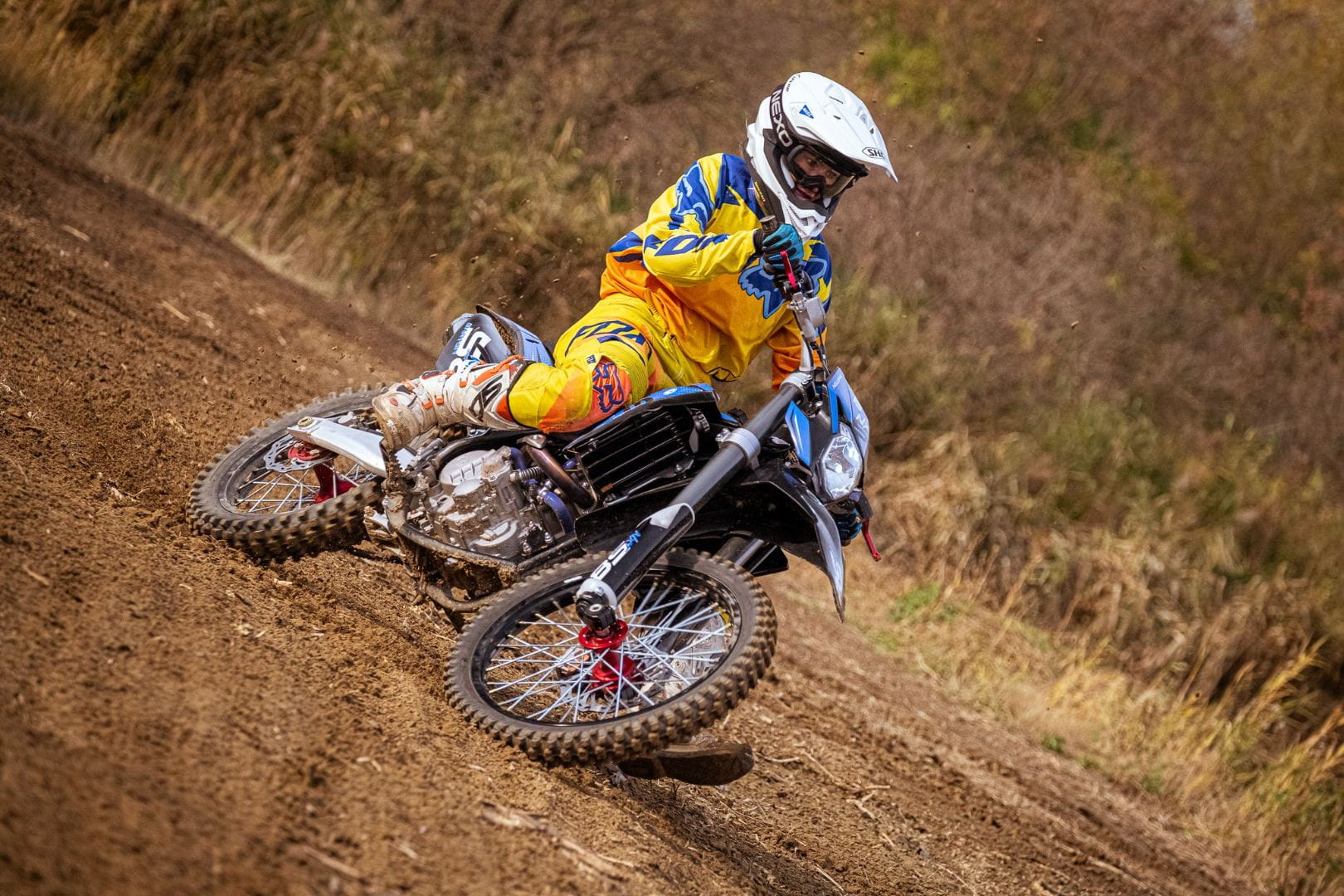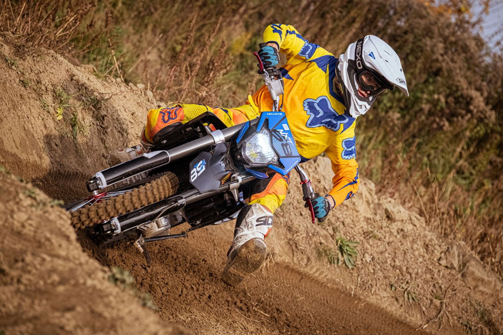 MOTOCYKL Barton NXT 300 BIAŁO-CZERWONY 2022 Wysokie wybicie i daleki skok na torze motocrossowym… Długi i stromy podjazd w stylu rajdów cross country… Trudna i wymagająca odwagi przeszkoda hard enduro… Jeżeli Twój organizm napędza adrenalina produkowana właśnie w takich okolicznościach, to dobrze trafiłeś. Barton NXT 300 stanie się Twoim ulubionym, zaawansowanym narzędziem do generowania najmocniejszych wrażeń. NXT300 wjeżdża do oferty Barton Motors jako model stojący na czele stawki offroadowej – nie tylko w naszej ofercie, ale także na całym rynku. Połączenie zaawansowanego podwozia, sporej mocy i wysokiej jakości sprawia, że za sterami NXT300 z powodzeniem odnajdą się nawet doświadczeni offroadowcy oraz zawodnicy. Pokonanych towarzyszy treningów lub zawodów zachwycisz nie tylko możliwościami, ale i ceną tego motocykla. Za osiągi odpowiada 1-cylindrowy, 4-suwowy silnik renomowanej marki Zongshen z chłodzeniem – co ważne – odbywającym się za pomocą cieczy. Poza sporą mocą maksymalną przekraczającą 26 KM, liczą się także wysoki moment obrotowy dostępny w szerokim zakresie, a także odpowiednie zestrojenie przełożeń napędu oraz skrzyni biegów. Dopracowane podwozie NXT300 pozytywnie zaskakuje. Stalowa rama zapewnia sztywność konstrukcji. Aluminiowy wahacz oznacza obniżoną masę nieresorowaną, a pomagają w tym też obręcze, szprychy i piasty łączące lekkość oraz wytrzymałość (i dobry styl). Wisienką na torcie jest wysokiej klasy zawieszenie z długim skokiem oraz pełną regulacją, dzięki czemu każdy zawodnik dopasuje je do własnych preferencji lub przeszkód. Doświadczony jeździec doceni pożądane akcesoria, które NXT300 posiada w standardzie, jak klamki-niełamki, wspomniane piasty, chwytaki opon, czy reflektor przedni. Wszystko to przy niskiej masie własnej wynoszącej 138 kg. Szukasz zaawansowanego motocykla offroadowego do wymagających treningów, do startów w zawodach, czy do zaawansowanej zabawy w terenie? Odwiedź salon Barton Motors i sam przekonaj się o wysokiej jakości NXT300. Dane techniczne Silnik Pojemność 300 cm3 Moc maksymalna 19,5 kW / 8500 obr./min. Taktowanie i cylindry - Rozruch Nożny / elektryczny Chłodzenie - Skrzynia biegów Manualna, 5-biegowa Wymiary i waga Długość 2140 mm Wysokość 1240 mm Szerokość 820 mm Rozstaw osi 1450 mm Waga 124 kg Dopuszczalna ładowność Koła Felga przednia 21" Opona przednia - Hamulec przedni Tarcza 240 mm Felga tylna 18" Opona tylnia - Hamulec tylny Tarcza 240 mm Parametry Zbiornik paliwa - zużycie paliwa - gwarancja 1 rok