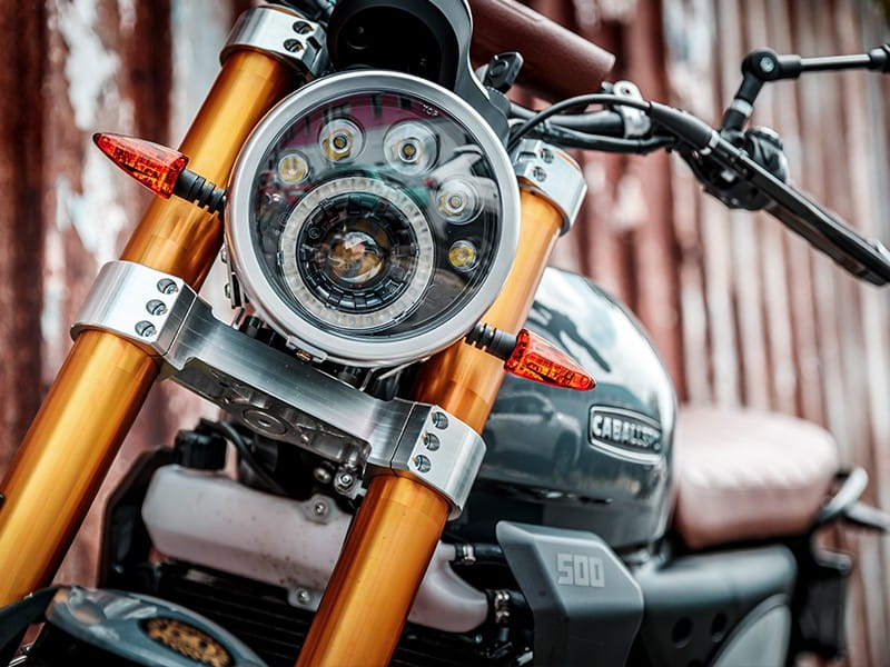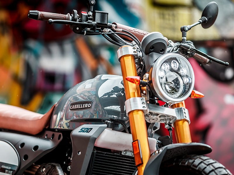 Elegancki motocykl, który łączy styl scramblera i off-roadu z modnym, miejskim światem. Caballero Deluxe jest idealny dla tych, którzy lubią cieszyć się lekką jazdą terenową na klasycznym, ale agresywnym rowerze, który doskonale sprawdza się również w ruchu miejskim. Silnik i podwozie mają tę samą podwójną duszę, zapewniając wszechstronność, która sprawia, że zastanawiasz się, w jakim terenie wolisz jeździć. Caballero Deluxe 500 jest zbudowany zgodnie z tą samą specyfikacją techniczną, co 500 Scrambler, ale ma nowy wygląd i cenne detale, takie jak kierownica z poprzeczką, nowoczesny szary zbiornik paliwa i błotniki, kontrastujące z brązową skórą. Specyfikacje SILNIK Homologacja: Euro5 Silnik: Jednocylindrowy, czterosuwowy, chłodzony cieczą Pojemność skokowa: 449 cm3 Wykryta moc maksymalna*: 40 KM przy 7500 obr./min Wykryty maksymalny moment obrotowy*: 43 Nm przy 6000 obr./min Otwór: 94,5 mm Skok: 64 mm Dystrybucja: Pojedynczy wałek rozrządu - 4 zawory Układ paliwowy: Elektroniczny wtrysk paliwa - korpus przepustnicy ø 40mm Rozrusznik: elektryczny Biegi: 6 Sprzęgło: Mokre sprzęgło wielotarczowe Układ wydechowy: Podwójny wydech firmy ARROW Zużycie paliwa: 4,2 l/100 km PODWOZIE Rama: rama z centralnej rury ze stali CrMo Wahacz: ze stali o zmiennym przekroju i progresywnym łączniku Opony: 110/80 R19, 140/80 R17 Koła: szprychowe z aluminiowymi obręczami Hamulce: Przednia pływająca tarcza hamulcowa ø320mm – Tylna tarcza hamulcowa ø230mm ABS: Continental dwukanałowy ABS (odłączany) Zawieszenie przednie: ø41mm upside down Skok przedniego zawieszenia: 150 mm Zawieszenie tylne: regulacja tłumienia odbicia Skok tylnego zawieszenia: 150mm