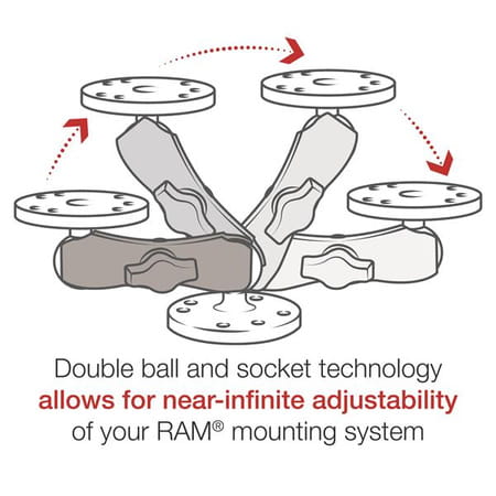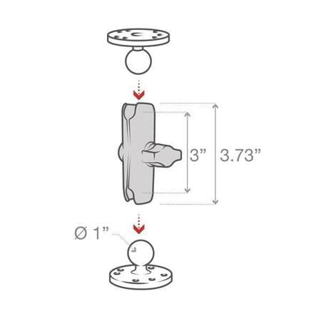 RAM® Średnie Ramie Montażowe 9.37 cm z Podwójnym Gniazdem w Rozmiarze 1"