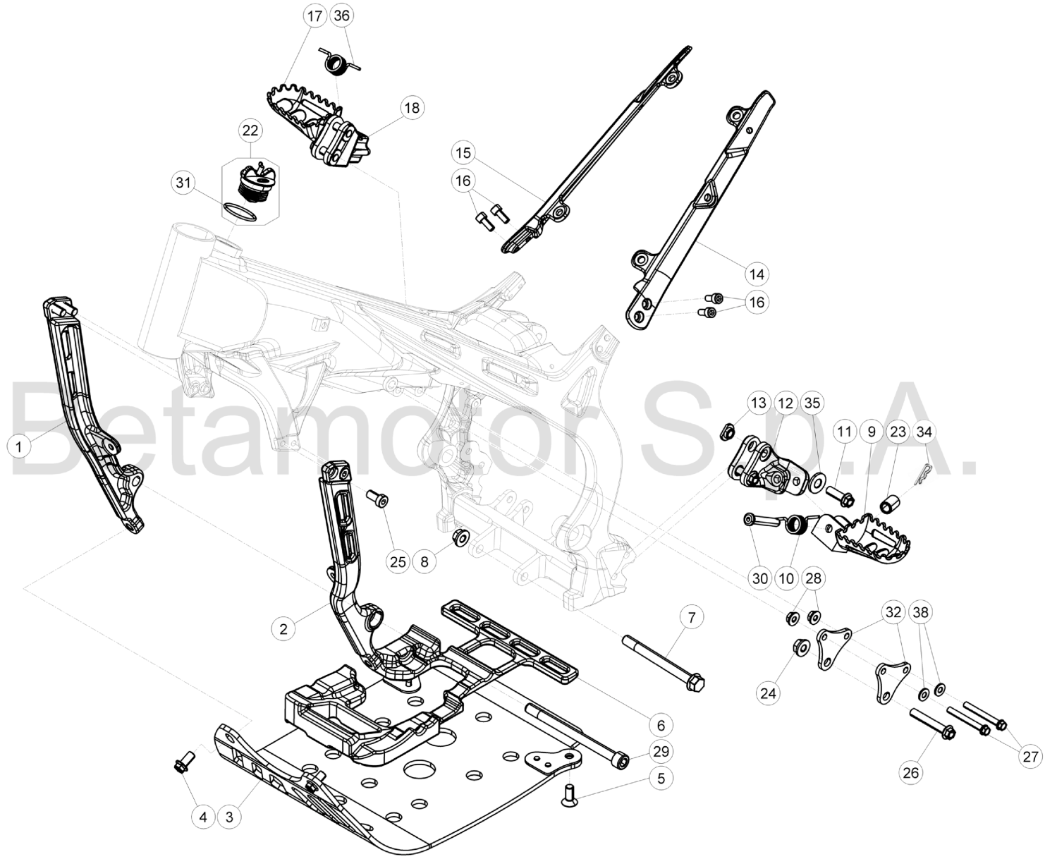 ŚRUBA MOCOWANIA PRZEDNICH UCHWYTÓW RAMY BETA TRIAL EVO 125/200/250/290/300 2T/4T 2009-2021 OEM 007320020000 KATALOG CZĘŚCI POZYCJA NUMER 29