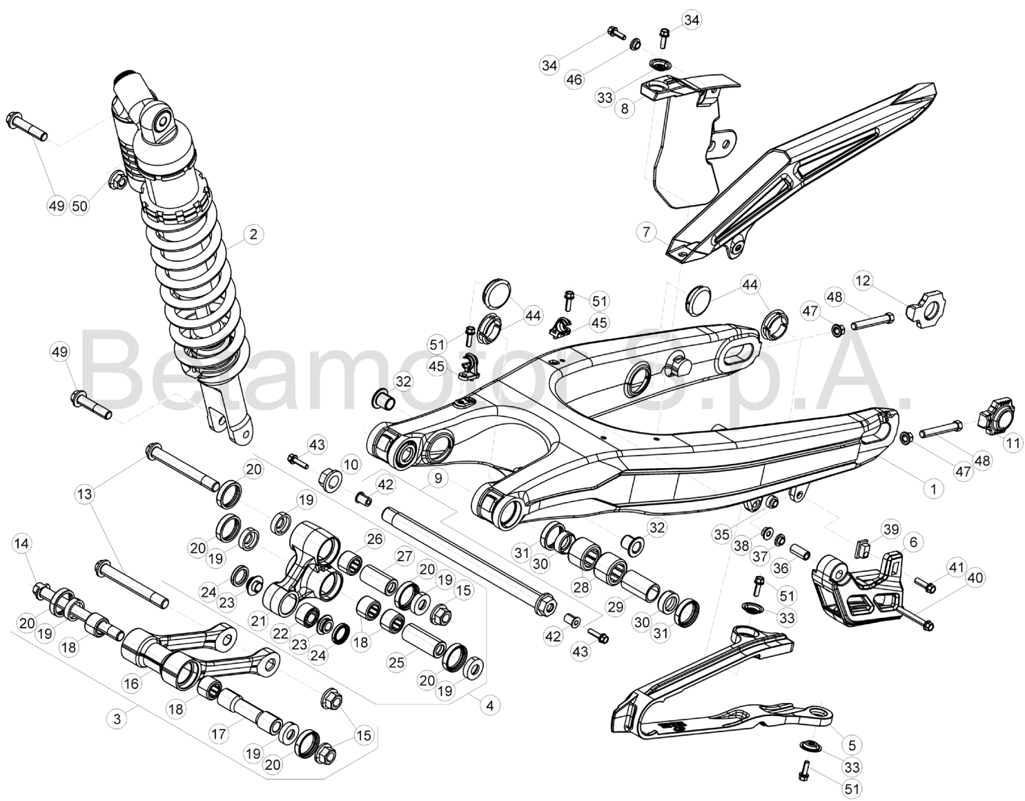 ŚRUBA MOCUJĄCA WAHACZ BETA RR 250/300 2T 2013-2020 RR 4T 350/390/430/480 2013-2020 OEM 031331428000 KATALOG CZĘŚĆI POZYCJA NUMER 9