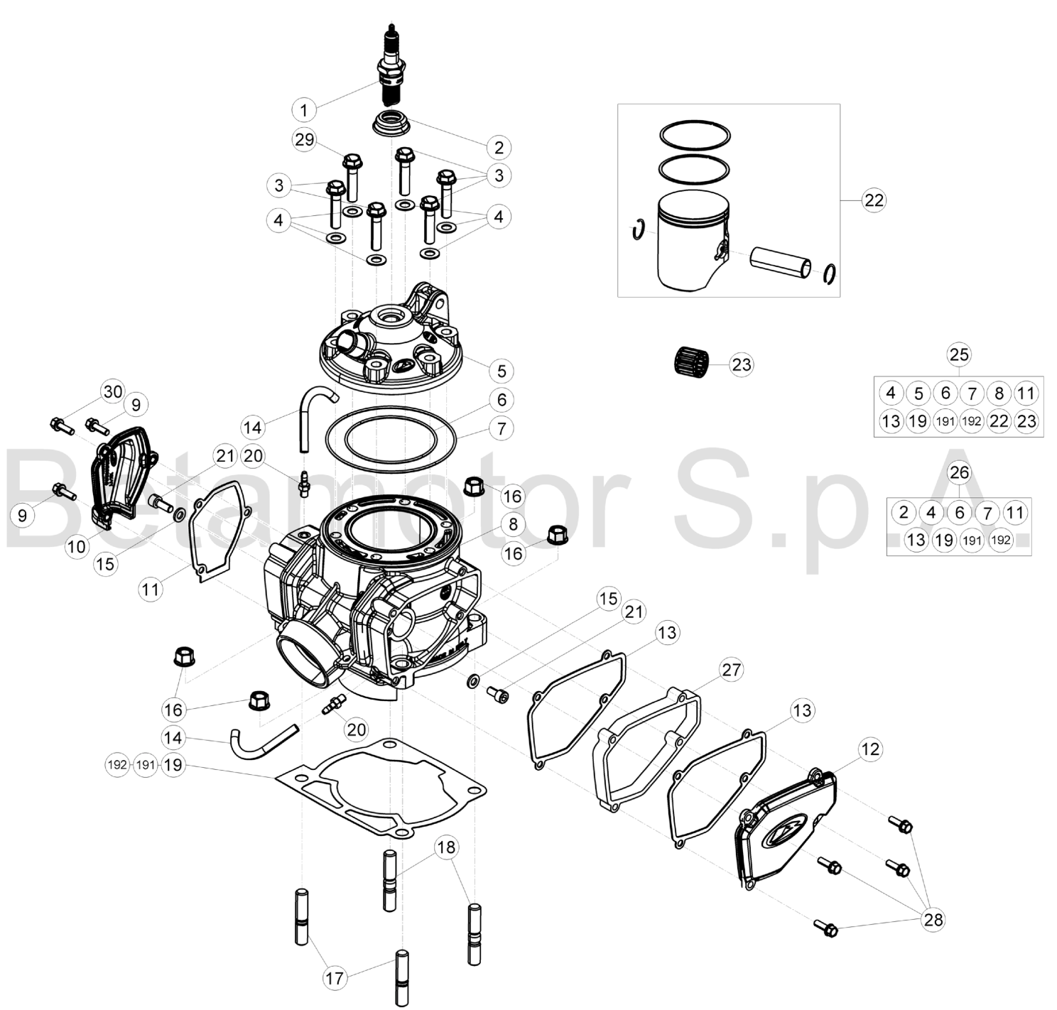 TŁOK KPL BETA RR 300 2T WERSJA STD/RACING 2013-2017 300CC D=72,0MM SEL.C- 71.97 CZĘŚĆ ORYGINAŁ OEM 026020328.00C KATALOG CZĘŚCI POZYCJA NUMER 22