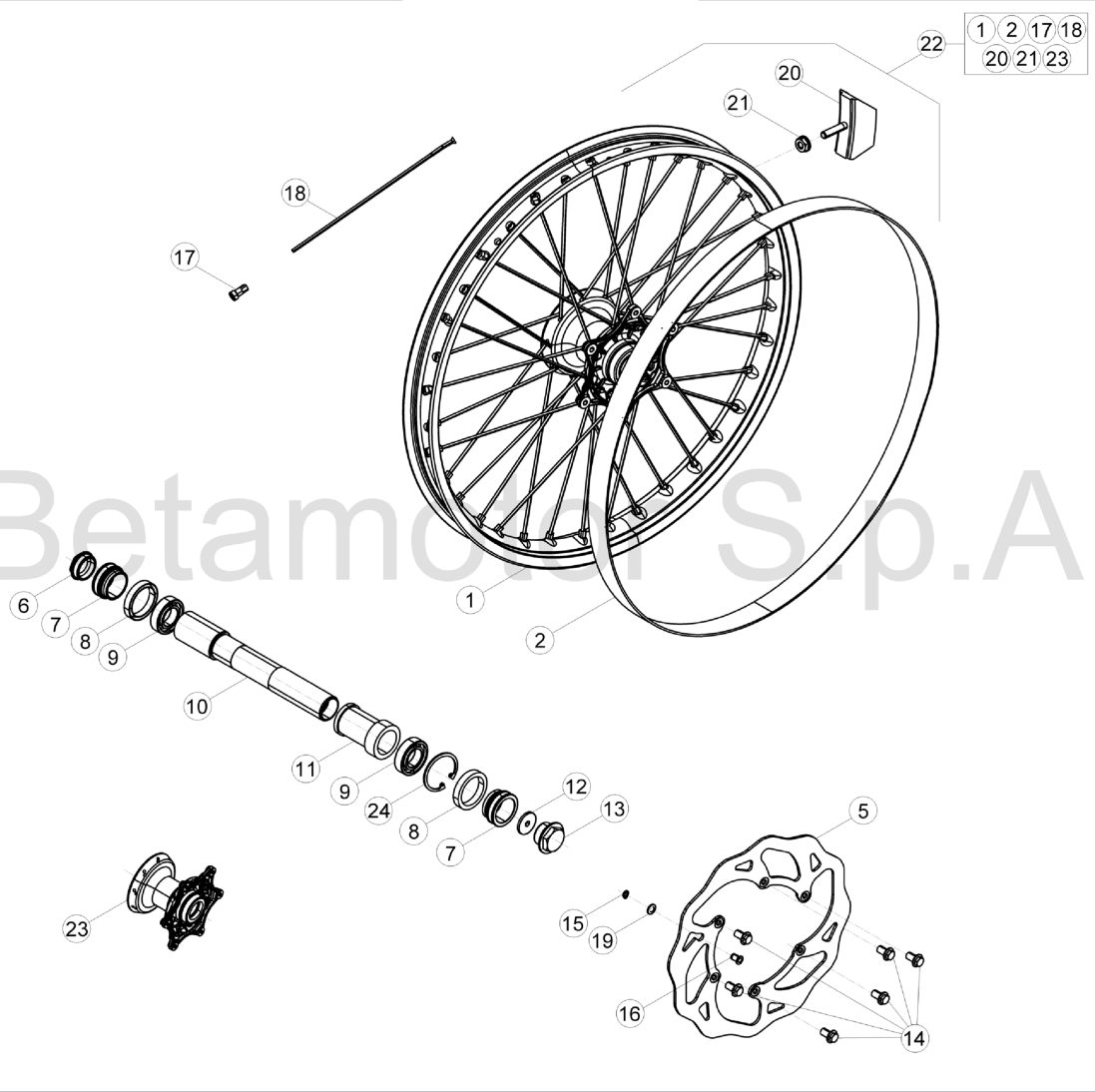 TRZYMAK PRZEDNIEGO KOŁA BETA RR 125/200/250/300 2T 2013-2022 BETA RR 4T 350/390/430/450/480/498/ 2013-2022 XTRAINER 250/300 2T 2015-2022 OEM 036410100000