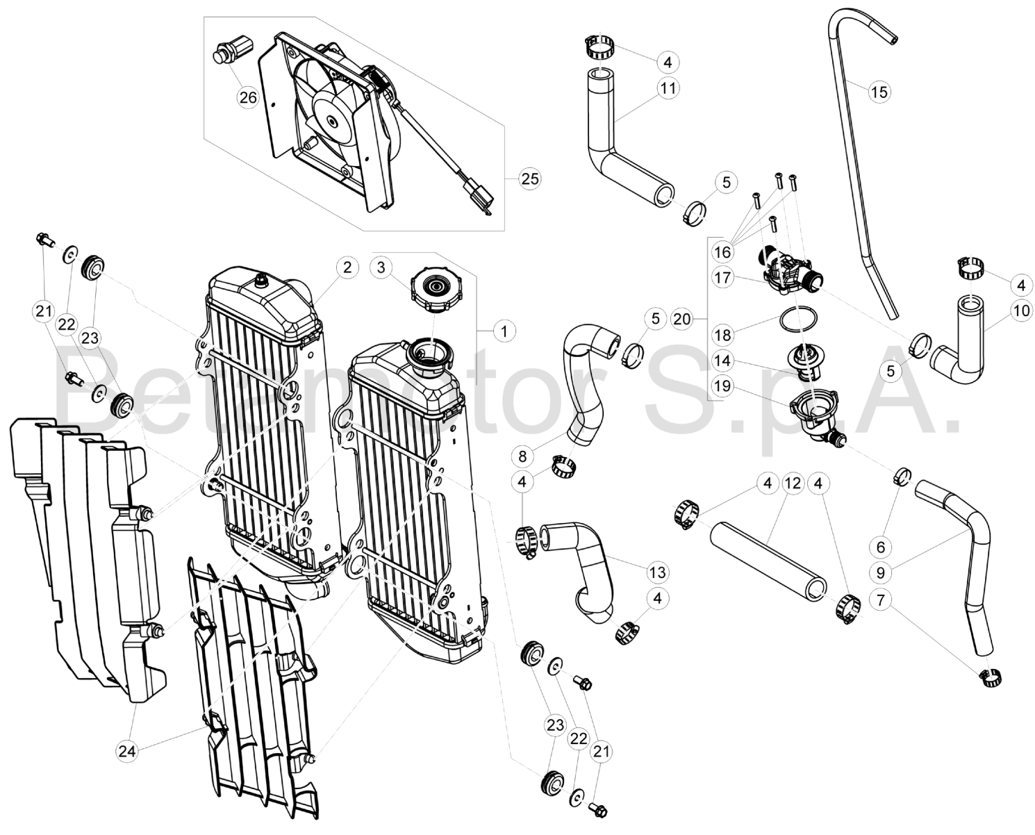Termostat (ZŁĄCZE Z TERMOSWITCHEM ) BETA RR 250/300 2T 2013-2021 OEM 026390080000 KATALOG CZĘSCI POZYCJA NUMER 26