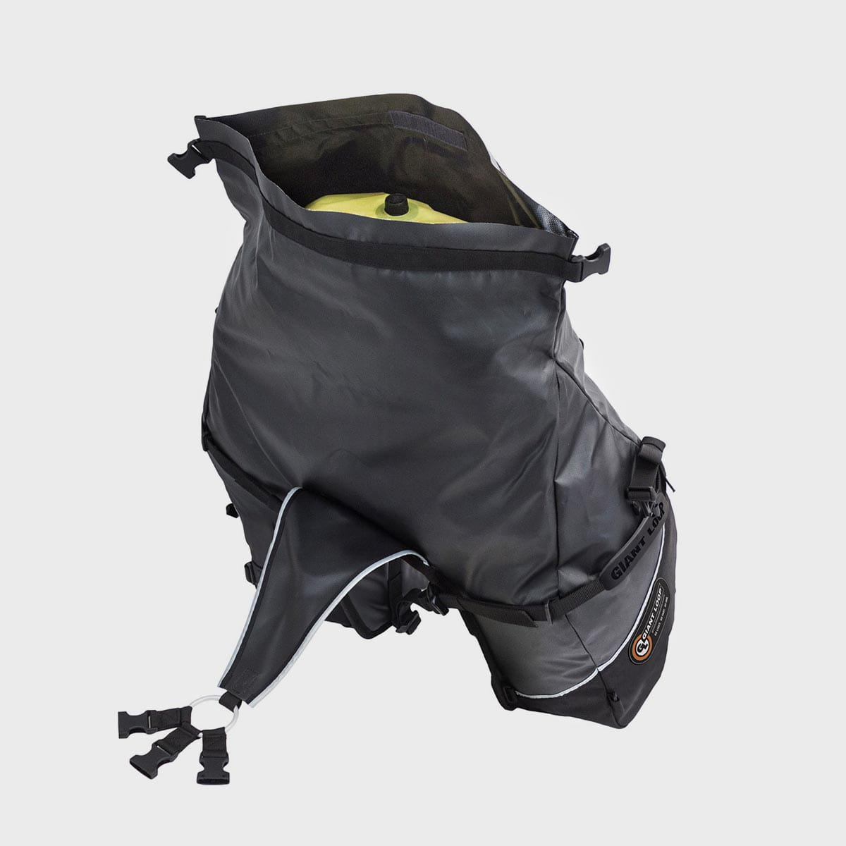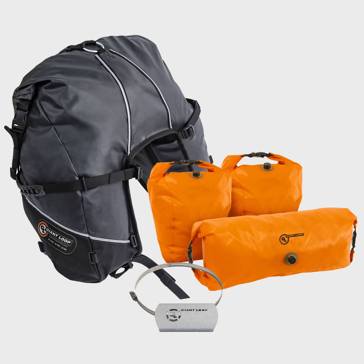 Great Basin, bezkompromisowa torba podsiodłowa Giant Loop o największej pojemności, mieści 68 litrów sprzętu przewożonego tam, gdzie pasażer zwykle siedział na motocyklu. Dzięki 6-funtowej masie suchej (w tym wszystkie komponenty), bezpiecznemu systemowi kotwiczenia oraz super wytrzymałej konstrukcji i materiałom Bomb Shell ™, Great Basin jest uosobieniem naszego „Go Light”. Idź szybko. Iść daleko." motto. Niezwykle wszechstronny Great Basin pasuje praktycznie do każdego motocykla zaprojektowanego do przewożenia pasażera, montowany na siedzeniu pasażera i mocowany do podnóżków pasażera. Pasuje do praktycznie każdego motocykla sportowego, sportowo-turystycznego, scramblera, standardowego, nakeda, przygodowego lub dual-sportowego. Zawiera zestaw trzech wodoodpornych wewnętrznych wyściółek zgrzewanych RF Saddlebag Dry Pods™ do w pełni wodoodpornego przechowywania sprzętu. Nie są wymagane boczne bagażniki ani stelaże pod sakwy Specyfikacje i instrukcje Tom 68 litrów (4150 cali sześciennych) pojemności do spakowania. Wymiary 56″ (142 cm) od dołu sakwy, od góry do dołu drugiej sakwy. 10″ (25 cm) wysokości torby w górnym środku. Odległość 6 cali (15 cm) od wewnętrznej do zewnętrznej dolnej części sakwy. 14 "(36 cm) od przodu do tyłu pośrodku góry. Suchej masy 6,0 funta (3 kg) ze wszystkimi dołączonymi elementami. Materiały Wytrzymała konstrukcja i materiały Bomb Shell ™ ze wzmocnionymi strefami uderzenia balistycznego, mocne wodoodporne zamki błyskawiczne YKK i zapięcia wojskowe. Aluminiowe paski kompresyjne z klamrą krzywkową. Niestandardowe tkane taśmy balistyczne na dolnych zaczepach. Great Basin to największa pojemność bez bagażnika Giant Loop, która pozwala przewozić do 68 litrów sprzętu na praktycznie każdym motocyklu, na którym zwykle siedzi pasażer. Ze względu na biomorficzny projekt, sakwę Great Basin naśladuje ludzką postać, siadając okrakiem na siedzeniu pasażera w pozycji pionowej, podobnie jak siedziałby pasażer. To ustawia ciężar wokół ramy pomocniczej, aby wyeliminować obciążenie motocykla. Trzy uszczelnione na szwach wodoodporne worki z wewnętrzną wkładką (z zaworami odpowietrzającymi) utrzymują porządek podczas wielodniowych wycieczek i wysychają, jeśli wilgoć przeniknie do zewnętrznej powłoki. Po dotarciu na miejsce suche torby można zdjąć i zabrać na kemping lub do pokoju hotelowego, pozostawiając sakwę przyczepioną do motocykla. A dzięki odpornemu na przygody systemowi pakowania Giant Loop możesz zwiększyć swoją nośność, dodając Fandango Tank Bag™, podwójnie zakończony Tillamook Dry Bag™ lub dwa Possibles Pouches™. Great Basin pasuje praktycznie do każdego motocykla sportowego, sportowo-turystycznego, scramblera, standardowego, nagiego, turystycznego lub dual-sportowego z siedzeniem pasażera i podnóżkami dla pasażera. Nie są wymagane boczne bagażniki ani stelaże pod sakwy. Kotwice bezpośrednio do podnóżków pasażera. Solidne punkty kotwiczenia można dodać do części ogonowej motocykla, instalując zestaw kotwicy Footmans Loop. Każdy kuferek Great Basin zawiera zestaw Hot Springs Heat Shield™, który zapobiega kontaktowi kufra lub paneli bocznych z elementami układu wydechowego. Można również dodać parę uchwytów Giant Loop ze stali nierdzewnej, aby pomóc utrzymać paski kotwiczne z dala od gorących spalin. Bez względu na wybraną konfigurację, torba Great Basin Saddlebag została zaprojektowana tak, abyś mógł jechać lekko, szybko i daleko, nosząc swój sprzęt tam, gdzie zwykle siedzi pasażer na motocyklu. Gdy nie jest używany, po prostu odepnij pasek i zdejmij sakwę, aby przywrócić rower do stanu fabrycznego.
